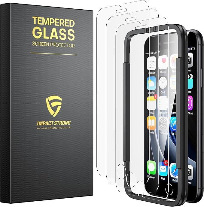 ImpactStrong Shatterproof Tempered Glass Screen Protector for iPhone 8/7 / 6s / 6 [Easy Installation Frame] [Bubble Free] [9H Hardness] [Full Coverage] Case Friendly, 4.7 Inch - (3-Pack)