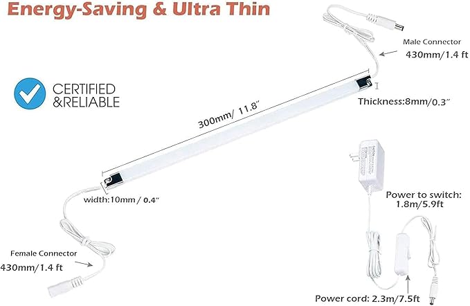 - โ ๐ช๐ฎ๐ฟ๐บ ๐ช๐ต๐ถ๐๐ฒ ๐๐ฟ๐ถ๐น๐น๐ถ๐ฎ๐ป๐ฐ๐ฒ: Experience the cozy glow of our LED Strip Lights Kit featuring 6 x 12-inch bars, a rocker switch, and a UL-listed A/C power adapter. Each bar consumes only 1.5 Watts with 15 high-intensity SMDs, producing a radiant 150 lumens.