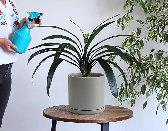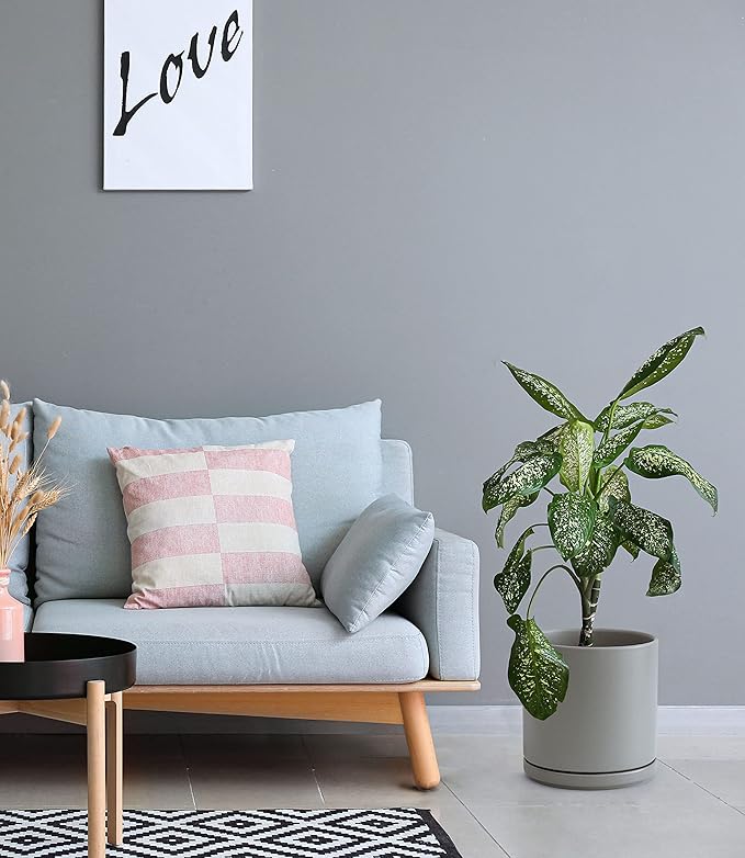 D'vine Dev 8 Inch & 10 Inch Ceramic Planter Pot for Plants with Drainage Hole and Saucer, Large Plant Pots Set, Grey, 94-G-L-3