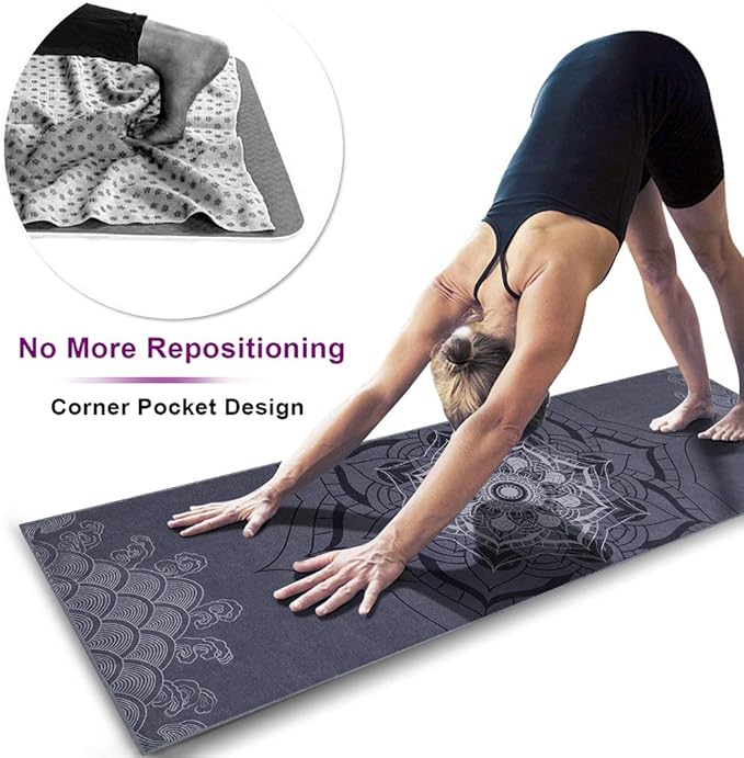 - Exclusive Corner Pockets Design: No more repositioning or distractions. The special designed corner pockets hook onto the corners of your mat , so when fully engaged, the towel is taut and will stay firmly in place, which allows you to fully focus your mind and body on the yoga practice.
