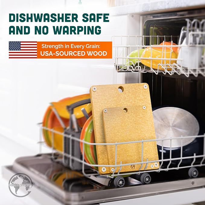 - WOOD COMPOSITE CUTTING BOARDS - This set is the best cutting boards for kitchen set you can get! Made from high-temperature-pressed paper composite material from wood fiber, they offer durability & efficiency without water absorption. This helps prevent cracks, splinters, peels, & even odors over time. Lightweight Dishwasher Safe Alternative to Bamboo