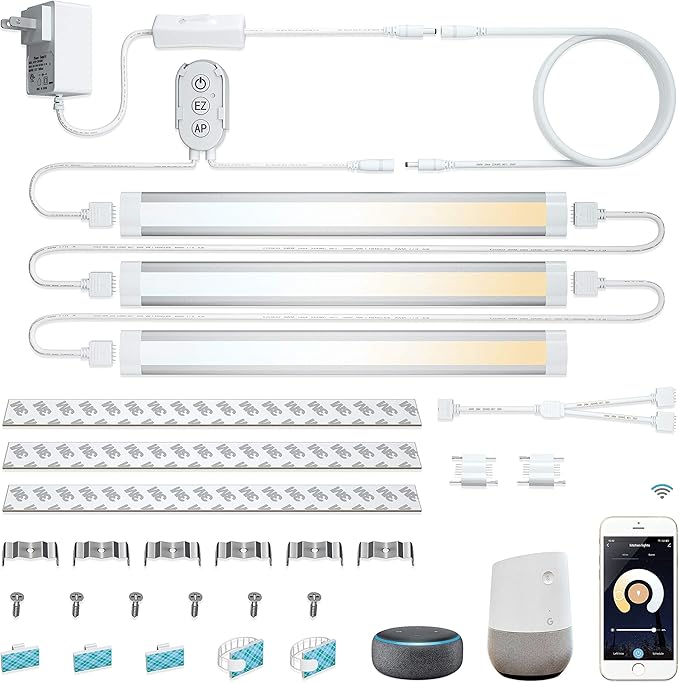 Smart Under Cabinet Lights Work with Alexa, Google,Siri, LED Light for Kitchen Shelf Counter Lighting with App, Voice Activated Dimmable and Linkable Warm to Cool White (3 Lights Bar Kit)