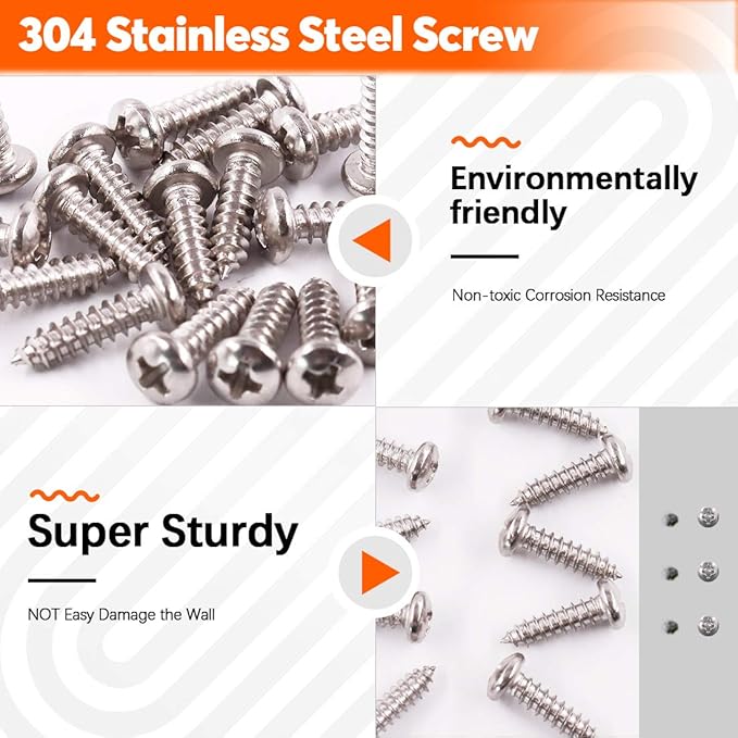 - 👍【Equipped with Screws】 Come with M4.2*16 screws, one-on-one pairing, saving you time looking for suitable screws. Made of high-quality 304sainlees steel, 45 degrees force, corrosion and rust resistance, NOT easy to slip and damage the wall.