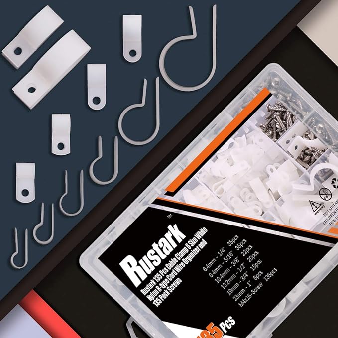 - 👍【6 Size Assortment Kit】The set contains 6 size in white and black color: 6.4R(1/4’’),8.4R (5/16’’), 10.4 R(3/8’’),13.2R(1/2’’), 19R (5/8’’), 23R( 1’’), coming with M4.2*16 screws. 135 Piece R-type cable clip cord organizer and 135 piece screw, totally 270 piece.