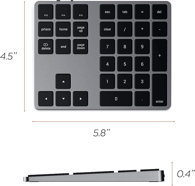 Satechi Bluetooth Extended Numeric Keypad, Slim Rechargeable 34-Key Numberpad, for MacBook Air/Pro M4, iPad Air/Pro M4/M3, iPad mini, Mac mini, iMac - Space Gray