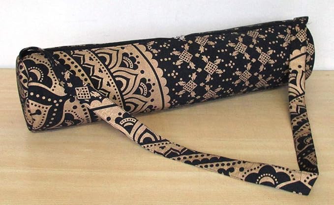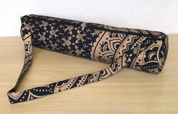 ICC Black Gold Mandala Full-Zip Exercise Yoga Mat Carry Bag Gym Beach Pilates Carrier Bags Hippie Mandala Indian Cotton Bag
