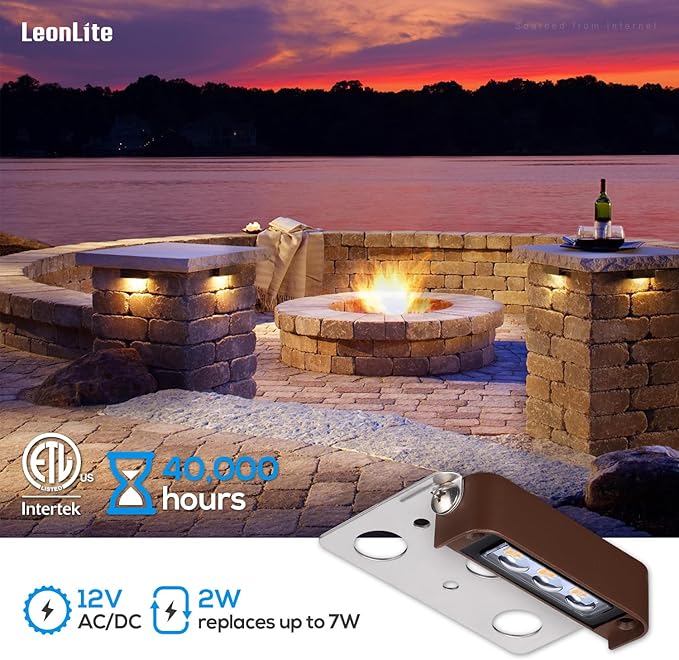 - [Update] Widely Used: Update 120 degree rotable design, this hardscape paver light can be rotated to fits more applications. Powered by 12V AC/DC, this LED low voltage landscape light can be used to light barbecue fire pits, landscape steps, retaining walls, decks, rock brick column, outdoor kitchen, flowerbeds, and masonry walls