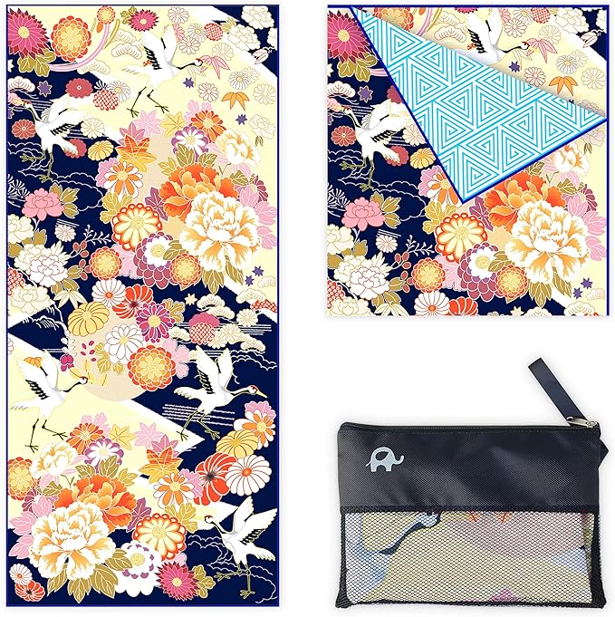 Quick Dry Towel Extra Large 78x35 Inch - Microfiber Beach Towel - Perfect for Beach, Travel, Swimming, Pool, Yoga, Hiking, Camping - Lightweight, Fast Drying, Compact for Adults (Kimono Gold)