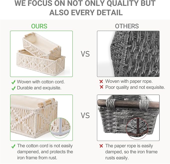 Mkono Macrame Storage Baskets Boho Decor Box Handmade Woven Decorative Countertop Toilet Tank Shelf Cabinet Organizer for Bedroom Livingroom Home, Set of 2, Ivory
