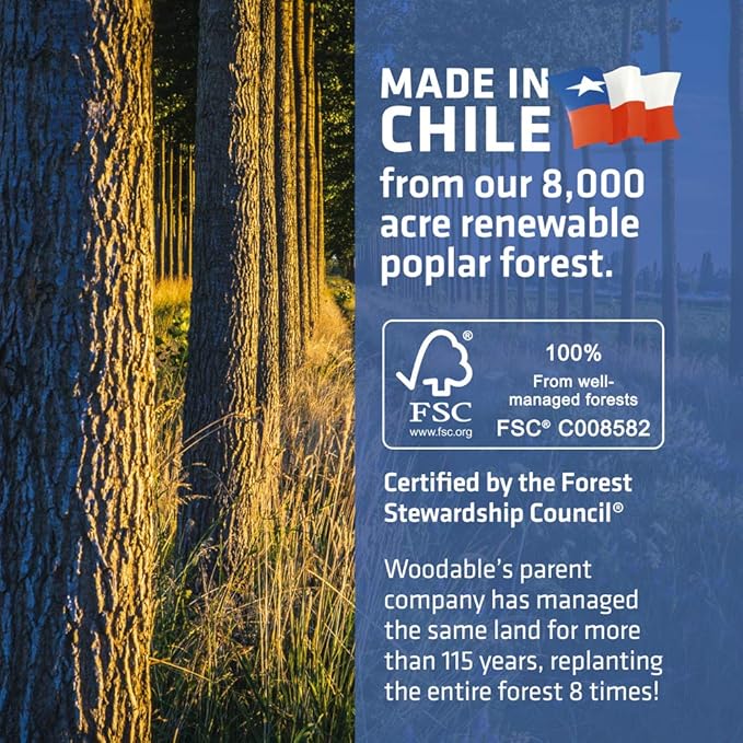 - 100% SUSTAINABLE, ECO-FRIENDLY WOOD - Sustainably sourced from our own FSC Certified forests in CHILE. Even our packaging is sustainably sourced and 100% plastic-free.