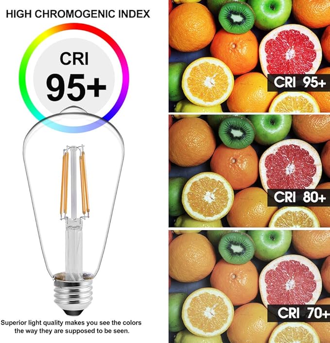 - ✅High Color Rendering Index (95+): With a CRI as high as 95, the filament bulb delivers true and natural colors, providing natural light every day