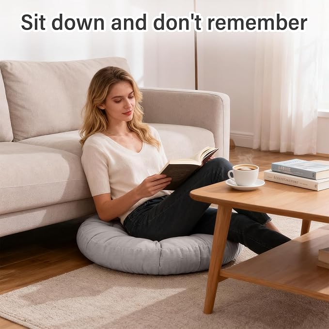 Tiita Floor Pillows Cushions Round Chair Cushion Outdoor Seat Pads for Sitting Meditation Yoga Living Room Sofa Balcony 22x22 Inch, Grey