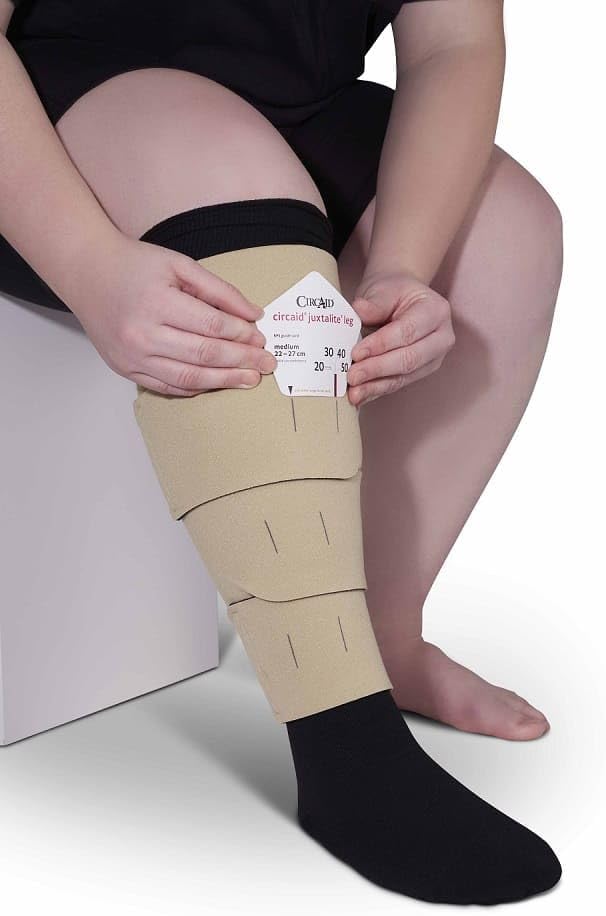 - ADJUSTABLE COMPRESSION LEVELS: The Juxtalite HD compression leg wrap uses a patented built-in pressure system along with the Juxtalock band system to allow for adjustable, repeatable, and precise compression levels of 20-30, 30-40, or 40-50 mmHg.