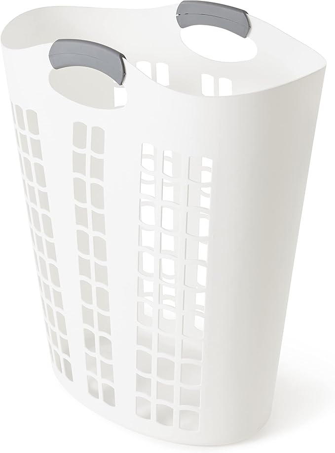 Gracious Living Laundry Basket, Easy Carry Flex Collapsible Hamper, 87.5 Liters, White - Large Plastic Clothes Storage Organizer for Home, Bathroom, and Bedroom