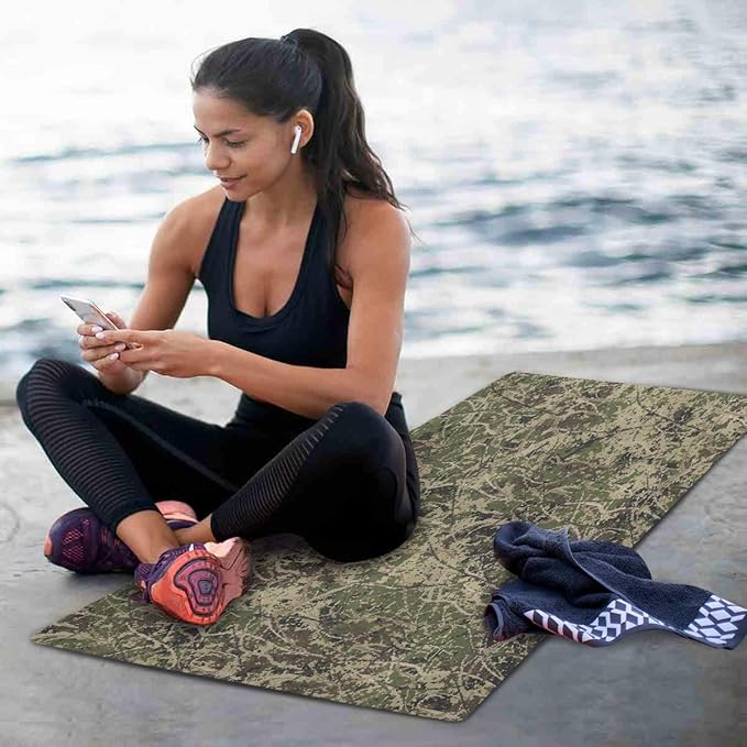 - 【HEALTH MATERIAL】 Yoga mat is made from natural tree rubber and Microfiber printed surface. without PVC, toxic plasticizers or harmful dyes.Microfiber material of suface mat and non-toxic natural rubber of down mat are laminated together , the both are made of high quality econ friendly healthy and recyclable materials.