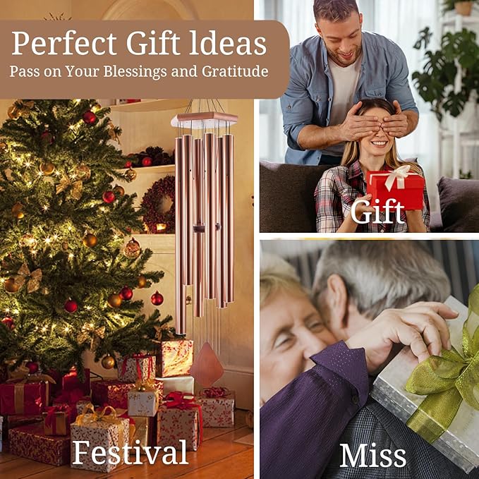 Wind Chimes Outdoor Large Deep Tone, 44 Inches Sympathy Wind Chimes Tuned Soothing Melody, Memorial Wind-Chime with 6 Heavy Tubes for Outside Decoration, Garden/Yard. Copper