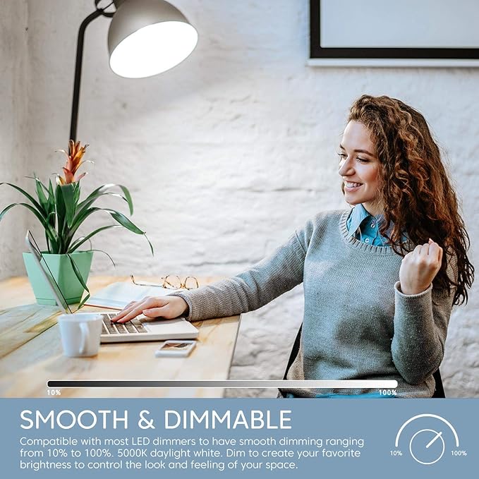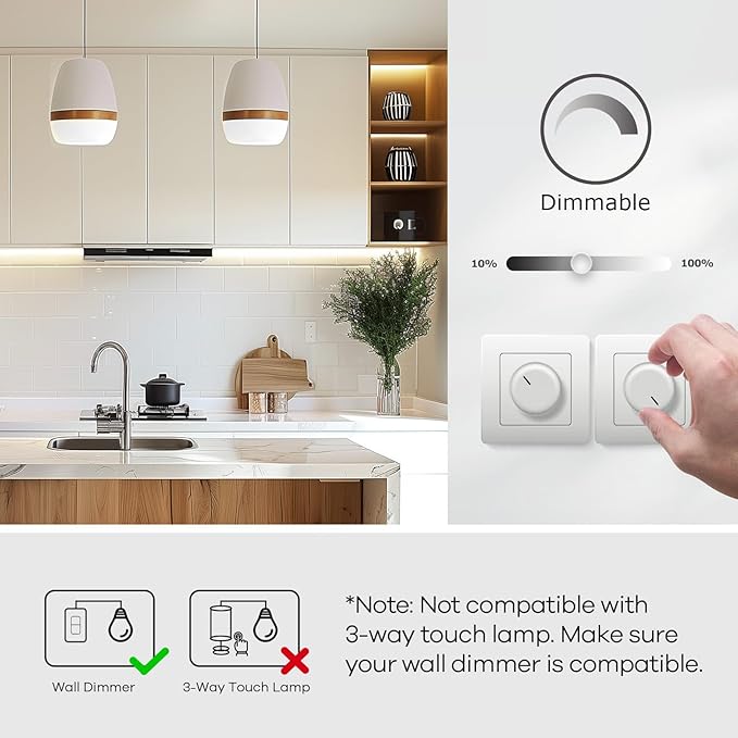 - ✔ SMOOTH DIMMING: Compatible with most LED dimmers to have smooth dimming. Dim to create your favorite brightness to control the look and feeling of your space. No buzzing, no humming, and no flickering. TIPS: In order to avoid flickering, the LED dimmer is suggested. If with Halogen type dimmer, it may cause flickering or buzzing when on lower settings. Not compatible with 3-way lighting fixture or 3-way dimmer switch.