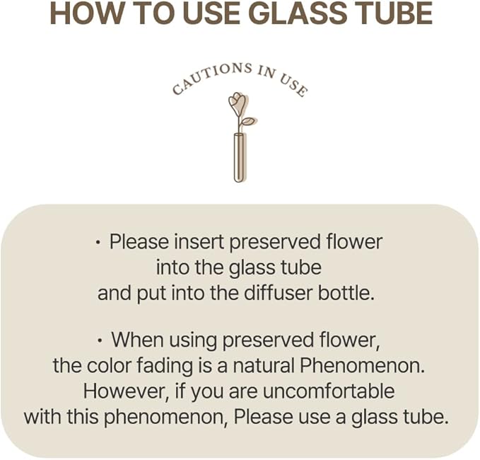 - Use Tip - Insert the flowers into the glass tube. And put reed sticks and the glass tube with flowers in the bottle.