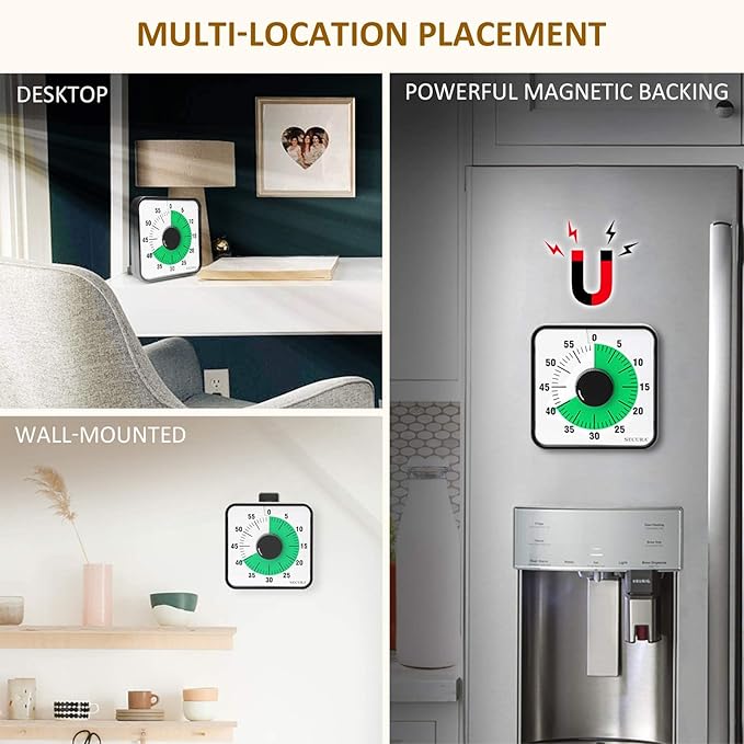 Secura 60-Minute Visual Countdown Timer, 7.5-Inch Oversize Classroom Visual Timer for Kids and Adults, Durable Mechanical Kitchen Timer Clock with Magnetic Backing (Green)