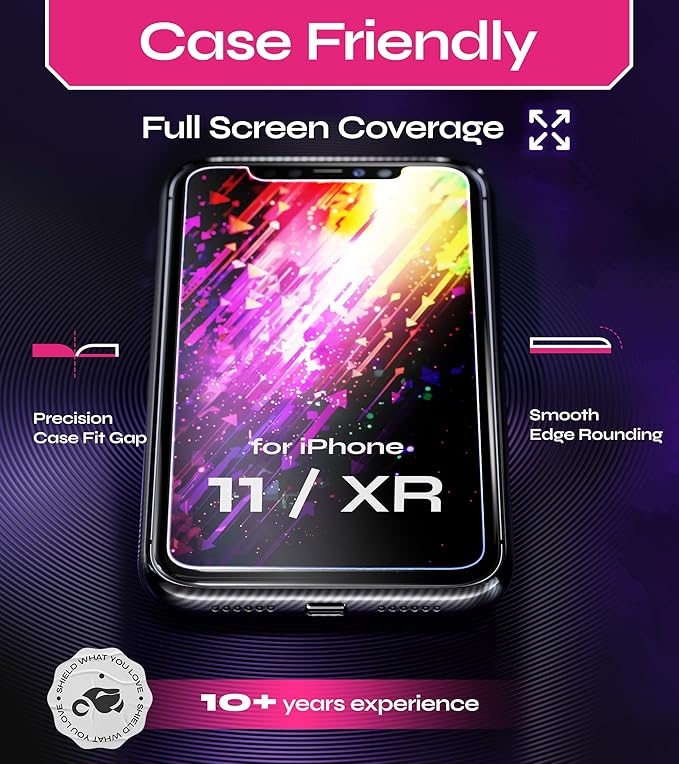 - 9H Nearly Diamond-Like Hardness Screen Protector for iPhone 11, XR to Completely avoid Shattering, Cracking and Scratches. The High-Quality Oleophobic Coating keeps your Screen Fingerprint-Free, Air Bubble-Free and Dust-Free