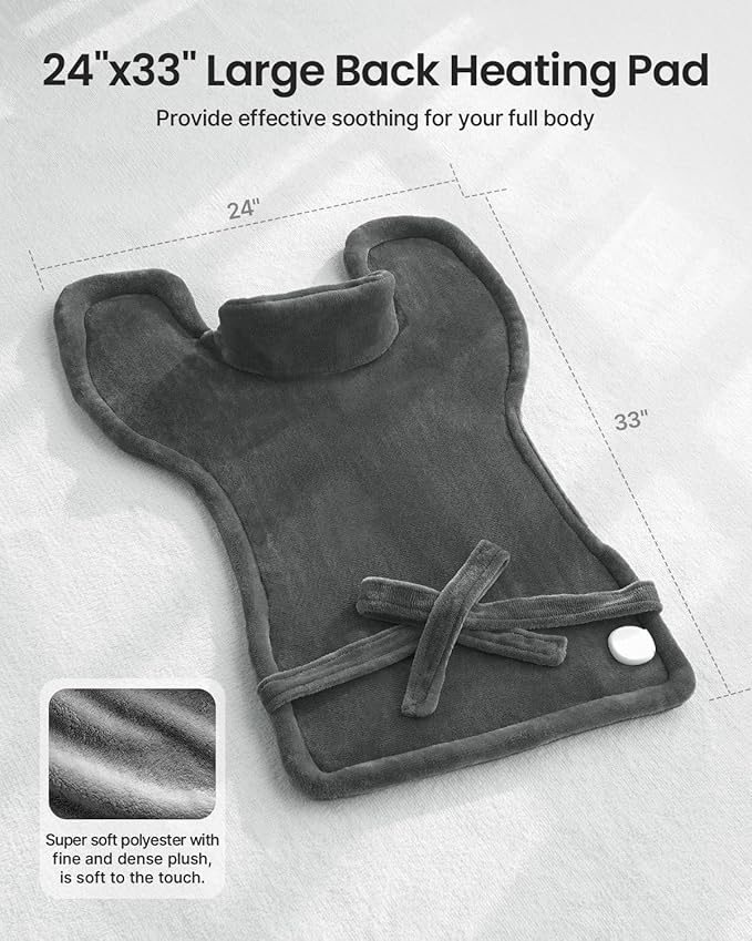 - Large Heating Pad for Pain Relief: The 24"x33" electric heating pad for back pain relief is big enough to fit most body shapes. Edge weighted neck heating pad offers soothing heat therapy to the body. So it can effectively relieve neck and shoulders and back pain, helping you relax your muscles faster. In addition, it can be flexibly applied to the the waist, abdomen, arms and legs. It's a useful stocking stuffers for teen girls women men,best selling items for moms elderly.