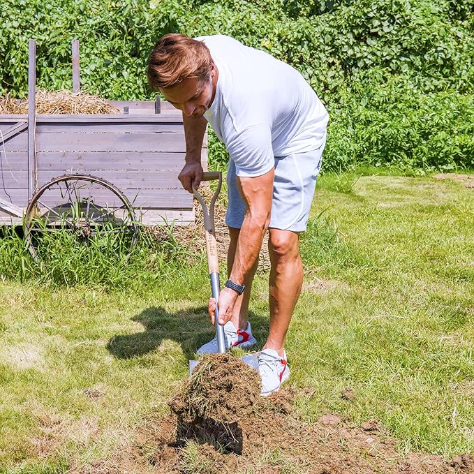 - VERSATILE SPADE - Heavy duty shovel can meet all kinds of needs, can be easily used for cutting ditches, grinding edges, digging holes, cutting through thick turf and furrow. The long handle provides better control near the work area. Sharp edges reduce the amount of work needed to break hard dirt.