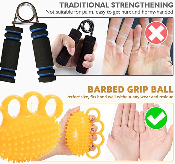 - 【Relieve pain and stiffness 】: Hold the ball in your hand, squeeze for 10 seconds, then release. Repeated for 10 minutes a day, this prickly structure improves circulation by massaging the meridians of the hands and alleviates spasms and stiffness in the fingers