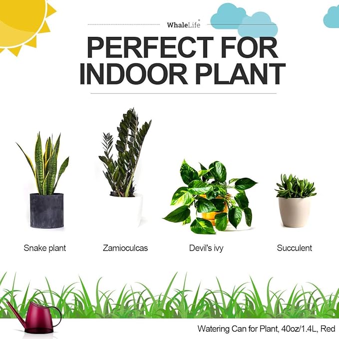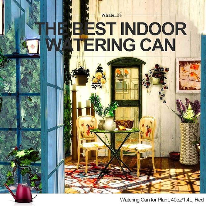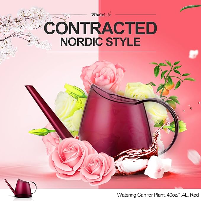 WhaleLife Indoor Watering Can for House Bonsai Plants (1.4L, Red)