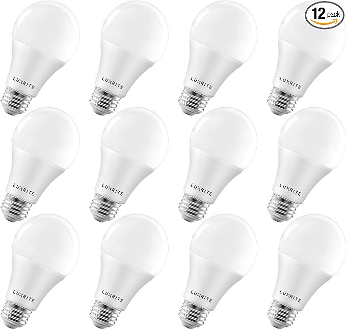 LUXRITE A19 LED Light Bulbs 100 Watt Equivalent Dimmable, 4000K Cool White, 1600 Lumens, Enclosed Fixture Rated, Standard LED Bulbs 15W, Energy Star, E26 Medium Base - Indoor and Outdoor (12 Pack)