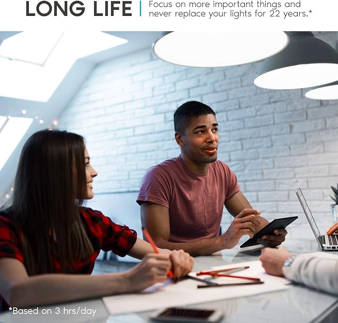- CONTINUOUS LIGHT - Built with an astounding 25,000 hours of lifetime which means no replacement will be needed for the next 22 years. Each e26 LED bulb lasts 10x longer than traditional 100W a19 bulb