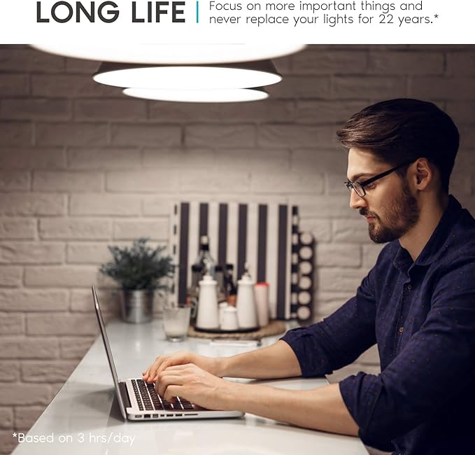 - Continuous Light - Built with an astounding 25,000 hours of lifetime which means no replacement will be needed for the next 22 years. Each e26 Led bulb lasts 10x longer than traditional 100W a19 bulb