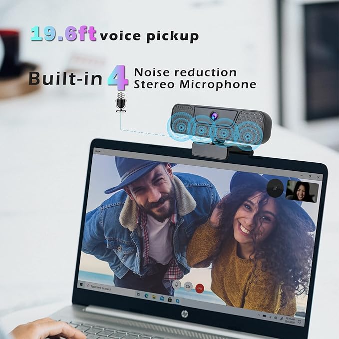 - 1. webcam 4K【Webcam - With Built-in 4 omnidirectional microphone, 19.6ft voice pickup】 Akyta Webcam features Four omnidirectional Microphones that capture your audio clearly from up to 19.6ft away, Reduces ambient noise and Provides high-quality audio for clear video conferencing or calls to friends. Great for Zoom / Facetime / Skype / MS Teams/ Google Meets/ Facebook / Twitch / YouTube / OBS.