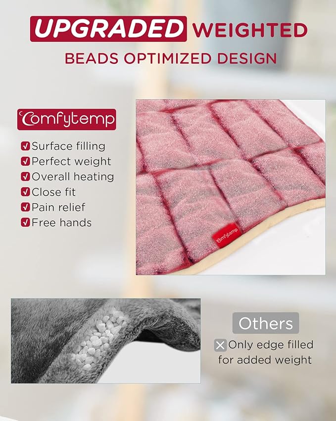 - 2.6lb Weighted Heating Pad: Filled evenly with micro-glass beads, our 19"x 23" large heating pad for neck and shoulders and back is designed for better fit around your neck and shoulders, providing a comforting sensation akin to being hugged. It effectively relieves neck, shoulder, and upper back pain, eases muscle tension and soreness. Additionally, it can be applied flexibly to the abdomen and waist to help relieve period cramps. An ideal gift for mom dad.