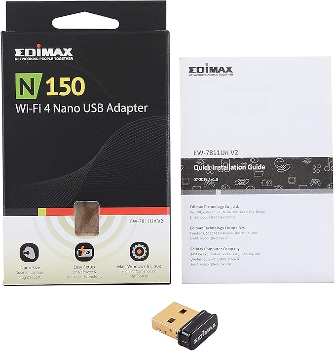 Edimax Wi-Fi 4 802.11n Adapter for PC N150 Nano USB Adapter, 150Mbps, Smallest Wi-Fi 4 Dongle, Win 11 Plug-n-Play, Linux: Ubuntu/Mint Plug-n-Play for Kernel 5.15 and Above, Mac OS, EW-7811Un V2