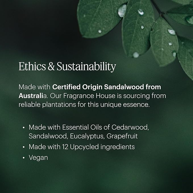 - Premium, Ethically Sourced Ingredients – Crafted with certified origin Australian sandalwood, essential oils of cedarwood, eucalyptus, and grapefruit, and 12 upcycled ingredients, this high-quality fragrance is worth every penny. Designed for sustainability without compromising on performance, it’s a powerful yet beautifully calming scent.