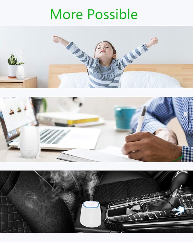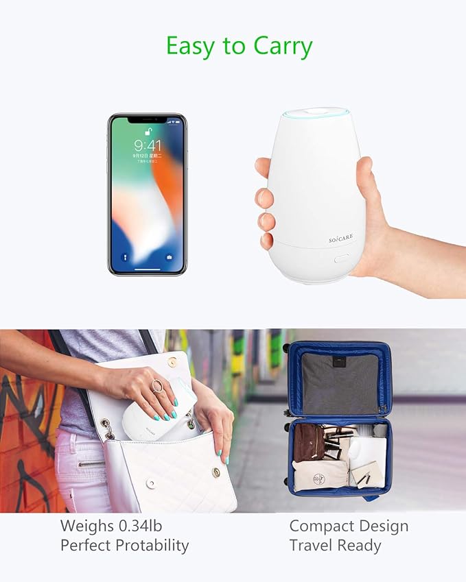 - 【Adorable Appearance】Super cute looking, changing light on the top of ring, tiny but powerful, simple and petite function of SOICARE aromatherapy diffuser will give you a quiet and snug experience.