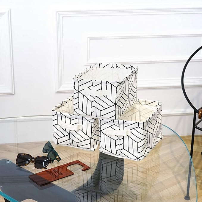CROWNED 6 Pcs Storage Basket Foldable Cube Fabric Bins Square Mini Box Receive Organizer Rectangle Canvas with Handles for Home Office Books Small 11x8x6.3 inch White
