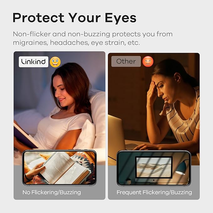 - ✔ SMOOTH DIMMING: Compatible with most LED dimmers to have smooth dimming. Dim to create your favorite brightness to control the look and feeling of your space. No buzzing, no humming, and no flickering. Tips: In order to avoid flickering, the LED dimmer is suggested. If with Halogen type dimmer, it may cause flickering or buzzing when on lower settings. Not compatible with 3-way lighting fixture or 3-way dimmer switch.