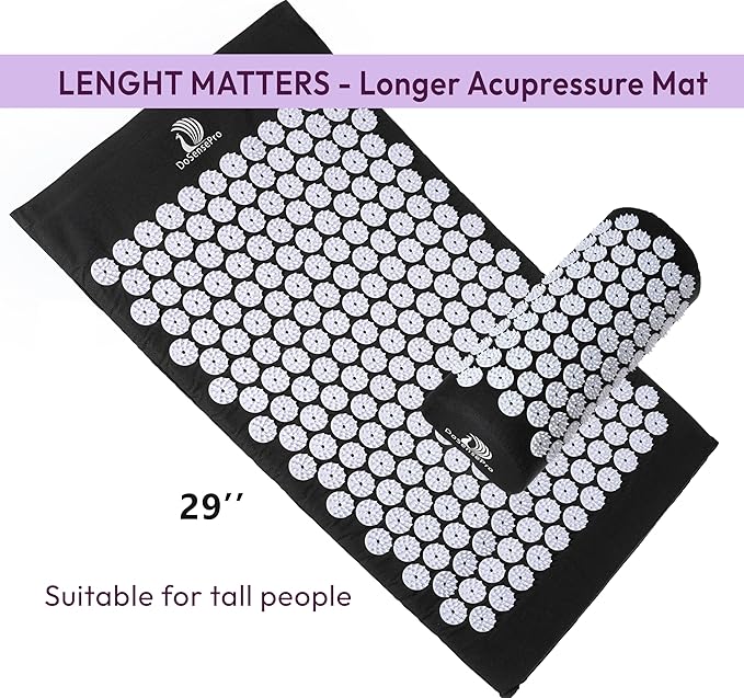 - BACK PAIN & STRESS RELIEF – Longer 29-inch acupressure mat with pillow helps ease back pain, neck tension, and sore muscles; includes hot/cold gel pack for added targeted comfort.