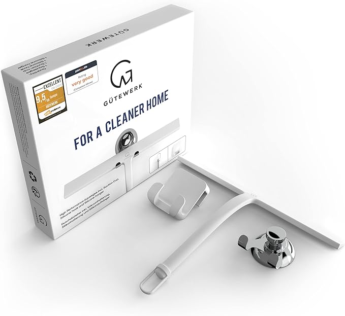 - MINIMALIST TIMELESS DESIGN - The GÜTEWERK glass squeegee is crafted with a matte white finish that impresses with its elegant timeless and smart design. In addition, the chrome-colored stainless-steel hook integrates well with any modern bathroom.