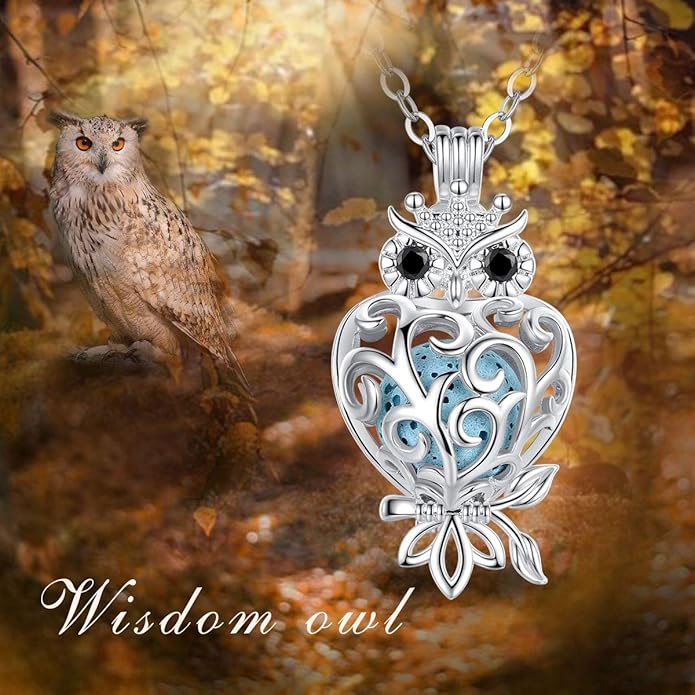 - 🎁 QUANTITY - 1pc large owl pendant, 24" chain, 7pcs round lava stones - 0.52"/13mm, 1pc velvet bag.