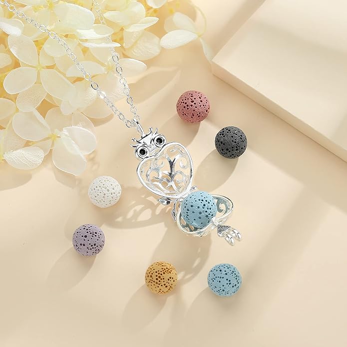 INFUSEU Aromatherapy Gifts Essential Oils Diffuser Jewelry for Women, Cute Animals Pendant Necklaces, 7 Lava Rocks Stones, 24" Chain