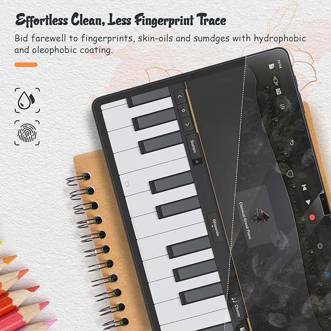 - Anti Glare: The oleophobic coating on the surface of screen protector can reduce oil, smudges and fingerprints. Meanwhile, experiencing a delicate frosted finish that reduces light refraction, without worrying about glare when drawing outdoors