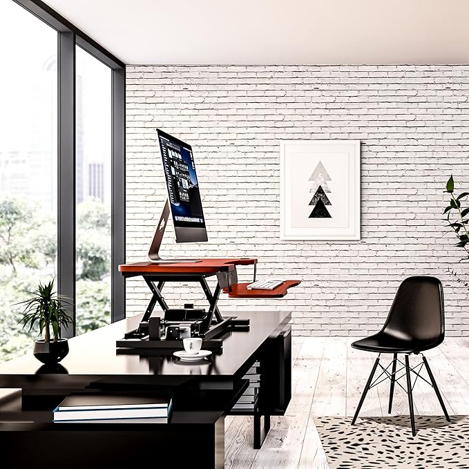 - ✔️ STABLE AND POWERFUL – Built with a carbon steel frame, the desk converter can lifts up to 80 lbs and remains stable, sturdy and smoothly adjust to any height settings; With the push of a button, the desk converter moves up or down quickly, and easily and with no predetermined stopping points