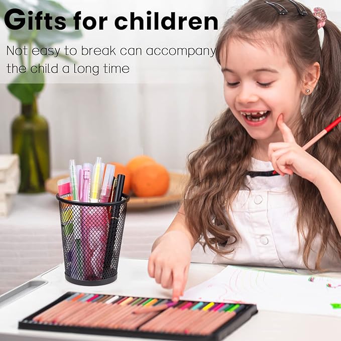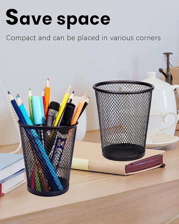 - Round metal mesh pencil holder with smooth edges for comfortable grip