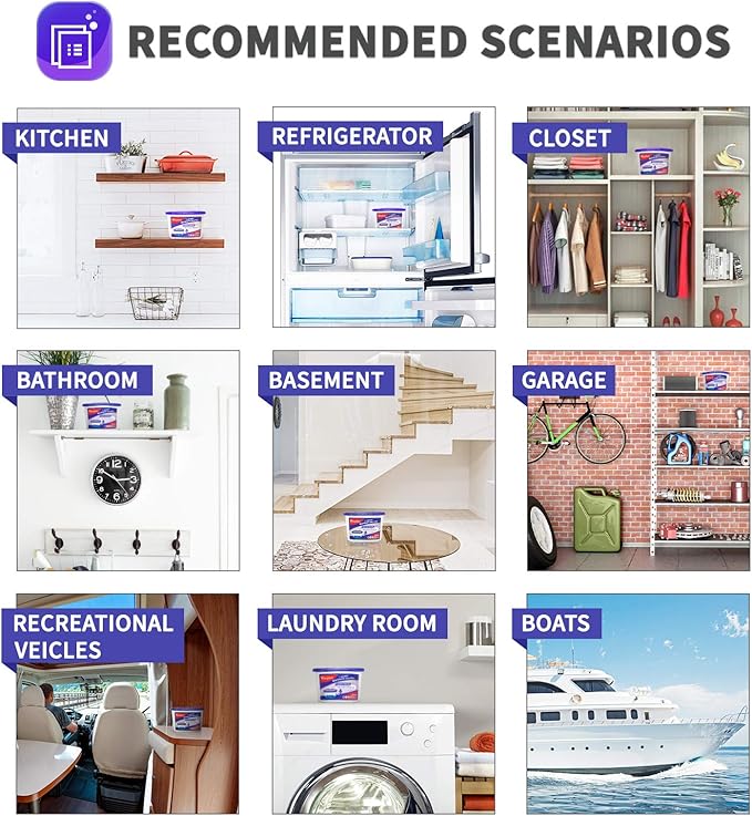 - Free Your Nose : Vacplus moisture removers with lavender fragrance could eliminate musty smell while releasing the pleasing fragrance at the same time. This safe moisture absorber is definitely a portable odor absorber for homes, closets, bathrooms, kitchens, laundry rooms, touring cars, shoe cabinets, boats, and closed spaces.