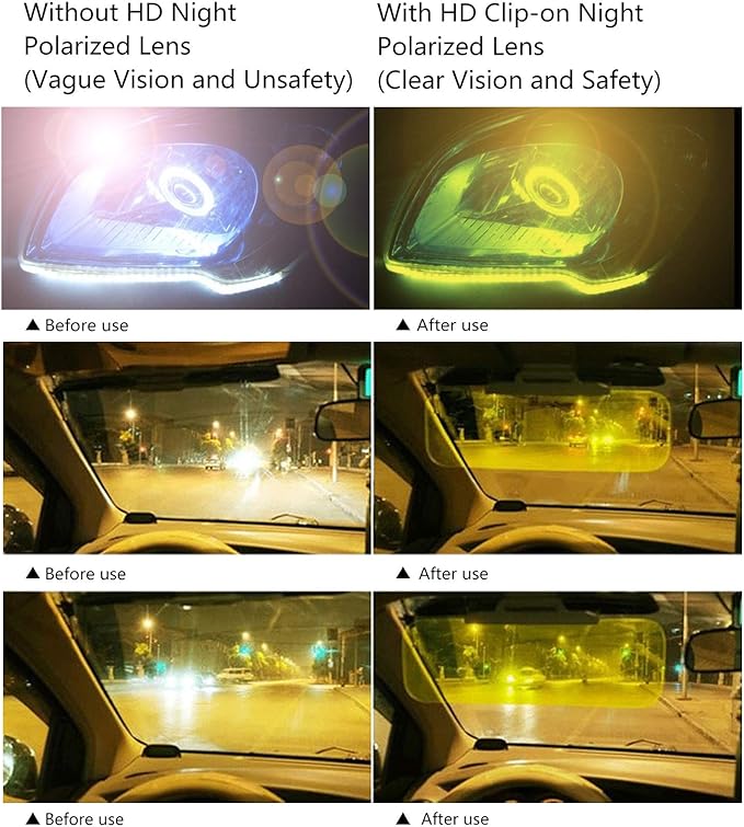 - Easy application - Just clip on and go! Great for sunny days, cloudy days, rainy days and nights