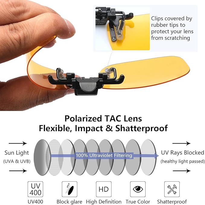 - Clip on your Prescription Glasses -Fits both metal and plastic frames, no need to buy expensive prescription sunglasses