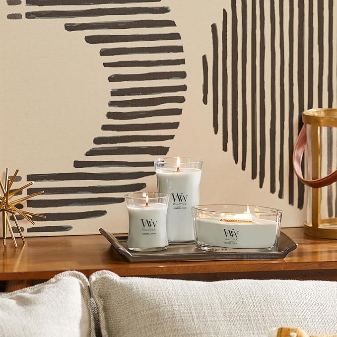WoodWick Large Hourglass Candle Lavender/Cedar - Premium Soy Blend Wax Pluswick Innovation Wood Wick Made in USA