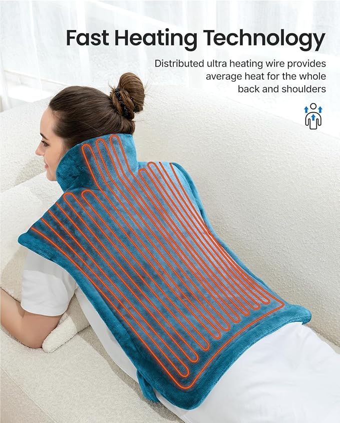 - Safety & Fast-Heating: The ETL-certified heat pad will auto-shut off when overheating to ensure safety, so you can use it with confidence. Neck shoulder heating pad is designed using fast heating technology which can heat up quickly to warm you. This physical therapy fsa heating pad has weighted edges so it fits perfectly to the body but isn't too heavy.
